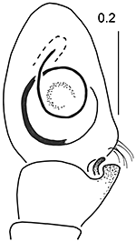 Fig.: F-34296Myrmarachne melanotarsa - ♂ - left palpal organ, dorsal, view