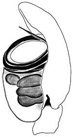 Fig.: D-53019Indomarengo likaliku - ♂ - left palp, ventral view. Scale bar: 0.2 mm