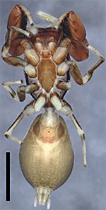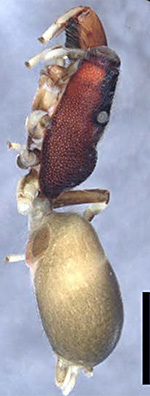 Fig.: F-33194Indomarengo likaliku - ♀ - prosoma, frontal view. Scale bar: 1 mm