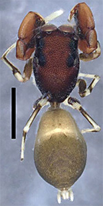 Fig.: F-33191Indomarengo likaliku - ♀ - habitus, dorsal view. Scale bar: 1 mm