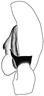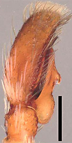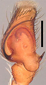 Fig.: F-33263Psenuc lalawa - ♂ - left palp, ventral view. Scale bar: 0.2 mm
