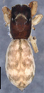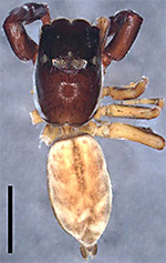 Fig.: F-33268Psenuc lalawa - ♀ - prosoma, frontal view. Scale bar: 0.5 mm