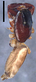 Fig.: F-33267Psenuc lalawa - ♀ - habitus, lateral view. Scale bar: 1 mm