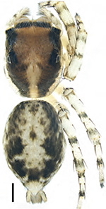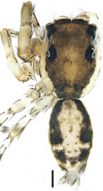 Yaginumaella medog - ♀ - habitus, dorsal. Scale bar: 0.5 mm