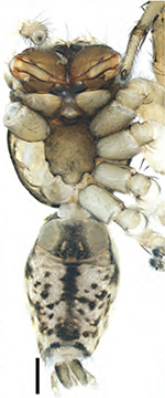 Yaginumaella medog - ♂ - carapace, frontal. Scale bar: 0.5 mm