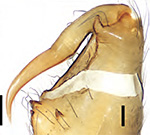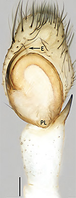 Yaginumaella medog - ♂ - palp, prolateral. Scale bar: 0.1 mm