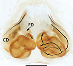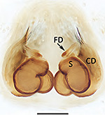 Yaginumaella medog - ♀ - vulva, dorsal. Scale bar: 0.2 mm