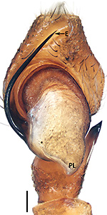 Yaginumaella qomolangma - ♂ - palp, prolateral. Scale bar: 0.1 mm