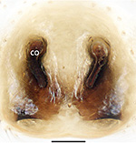 Yaginumaella qomolangma - ♀ - epigyne, ventral. Scale bar: 0.1 mm