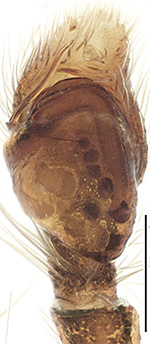 Australoneon keyserlingi - ♂ - palp, ventral view. Scale bar: 0.2 mm