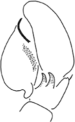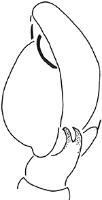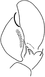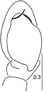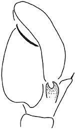 Langelurillus consobrinus - ♂ - left pedipalp, ventral view